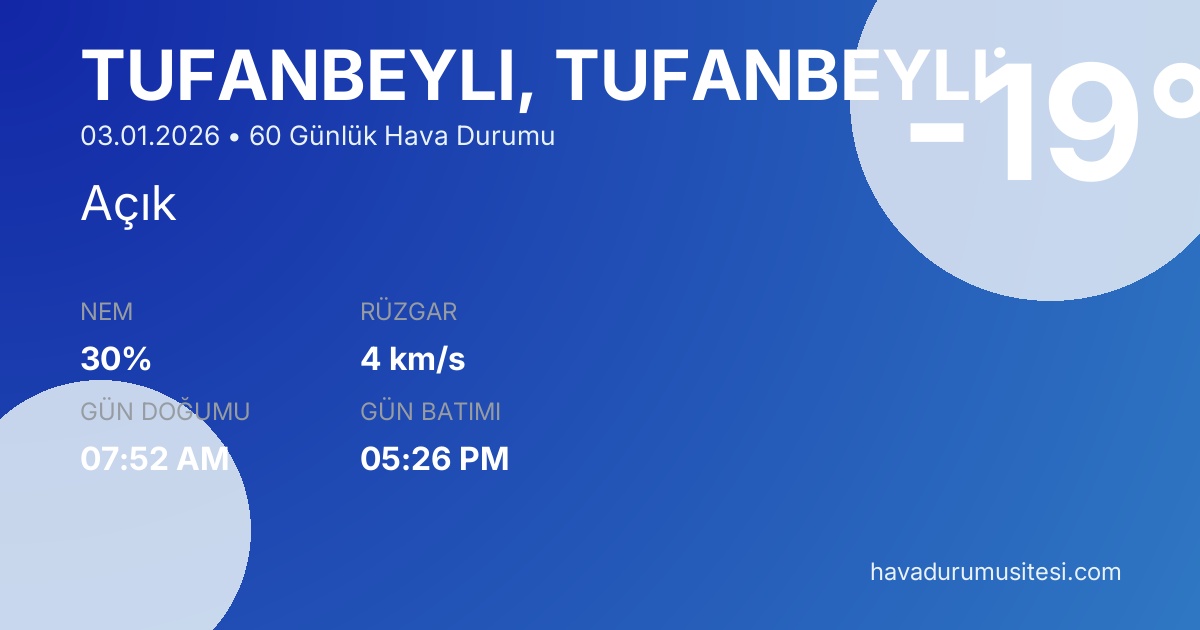 Tufanbeyli̇ 60 Günlük Hava Durumu