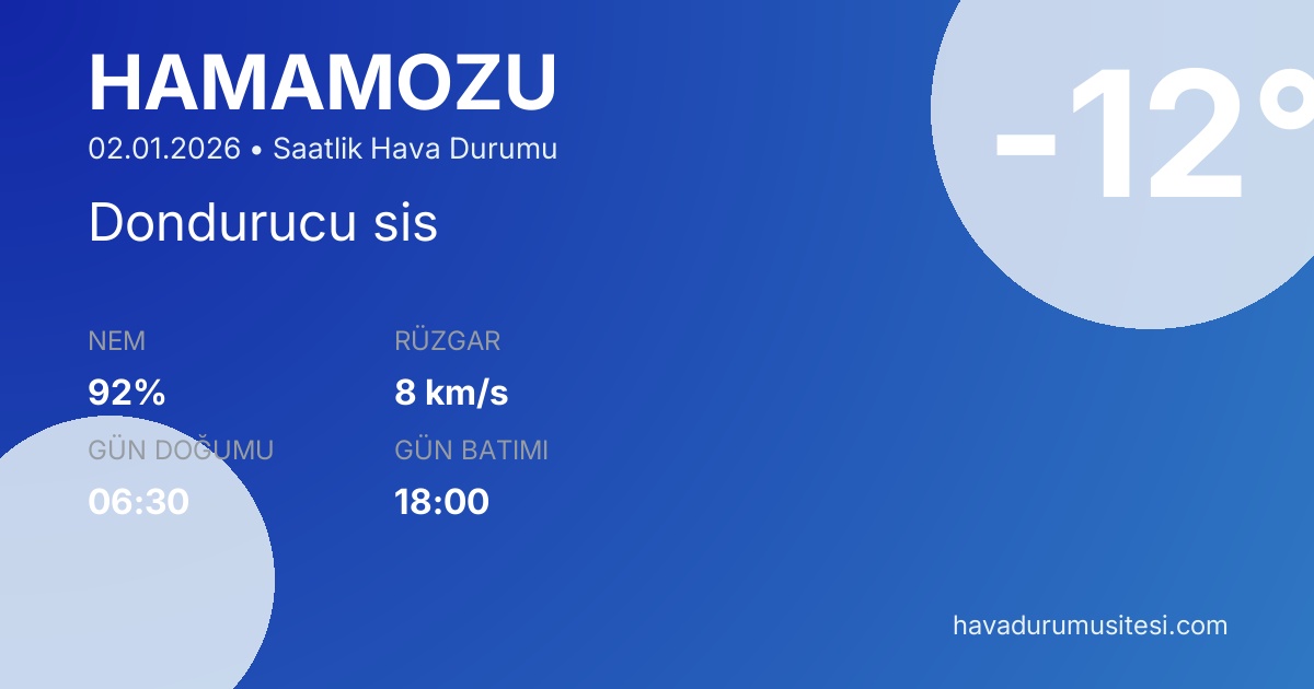 Şu anda Hamamözü'da sıcaklık -12°C, hava durumu Dondurucu sis ve