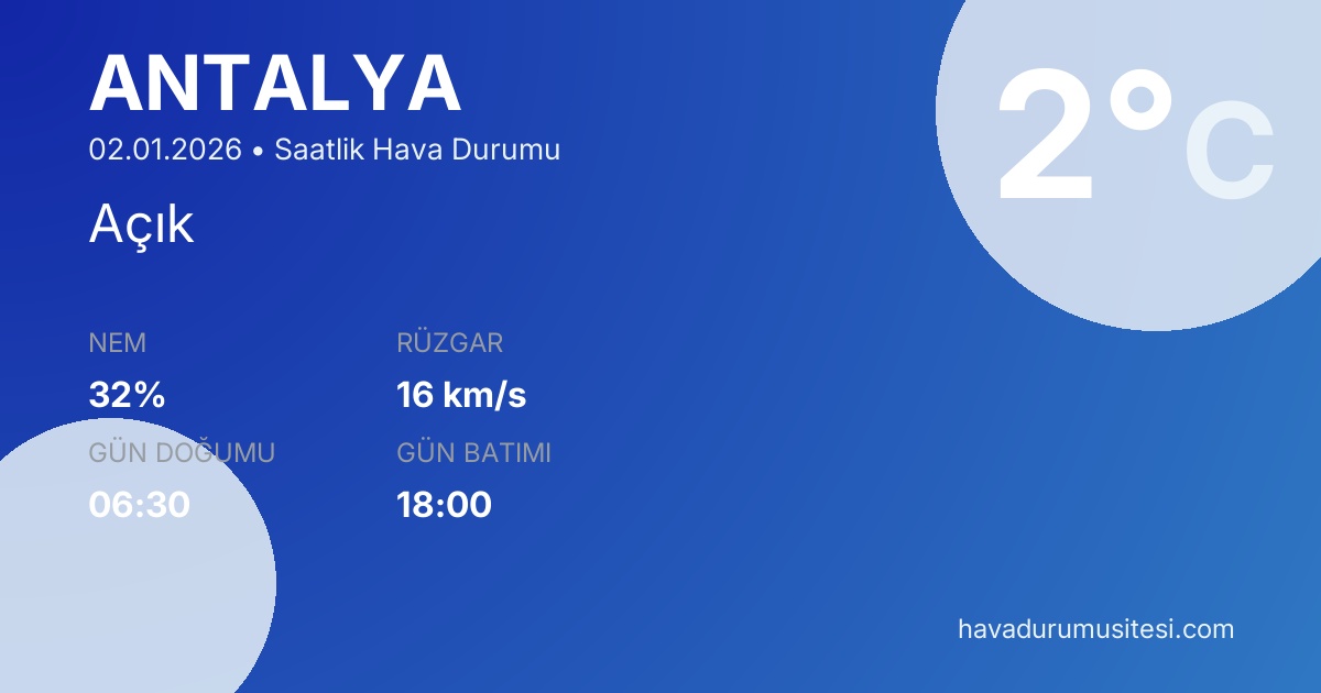 Antalya saatlik hava durumu ile hiçbir detayı kaçırmayın.