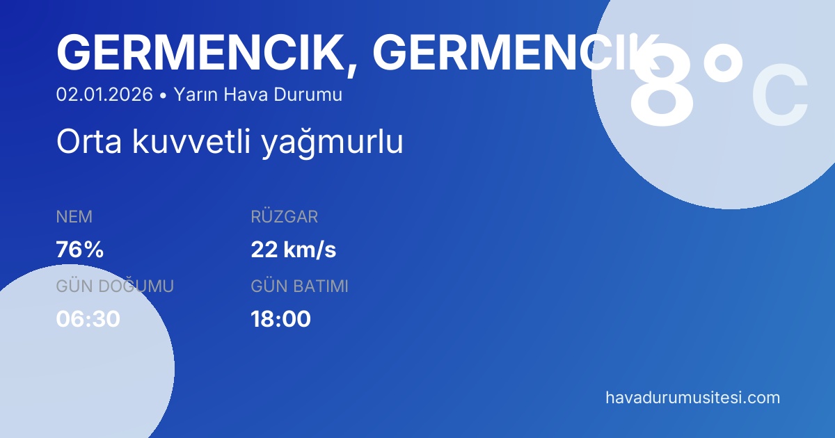 Daha detaylı saat saat bilgi için Germenci̇k saatlik hava durumu sayfamızı inceleyebilirsiniz.