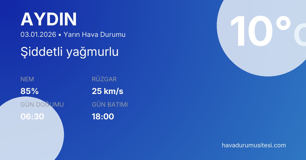 Aydin yarın hava durumu tahminleri düzenli olarak güncellenmektedir.