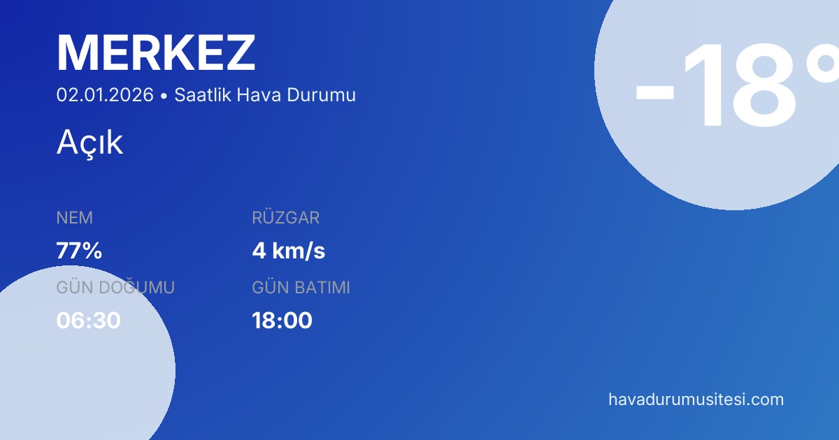 Şu anda Merkez'da sıcaklık -18°C, hava durumu Açık ve