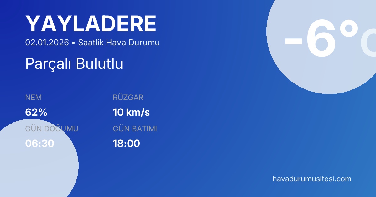 Yayladere saatlik hava durumu ile hiçbir detayı kaçırmayın.