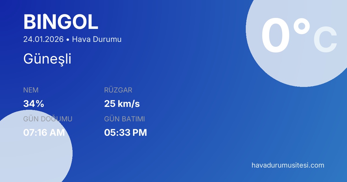 Bi̇ngöl, Türkiye'nin önemli şehirlerinden biri olarak kendine özgü iklim özelliklerine sahiptir. Kış mevsiminde Bi̇ngöl'da soğuk ve değişken hava koşulları beklenmektedir. Kar yağışı ihtimali, don olayları ve düşük sıcaklıklar için düzenli olarak hava durumu tahminlerini takip etmeniz önerilir.