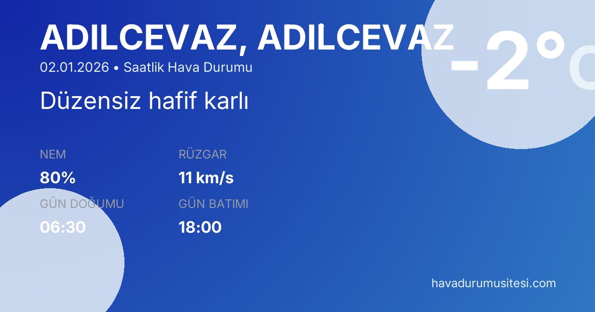 Adi̇lcevaz saatlik hava durumu ile hiçbir detayı kaçırmayın.