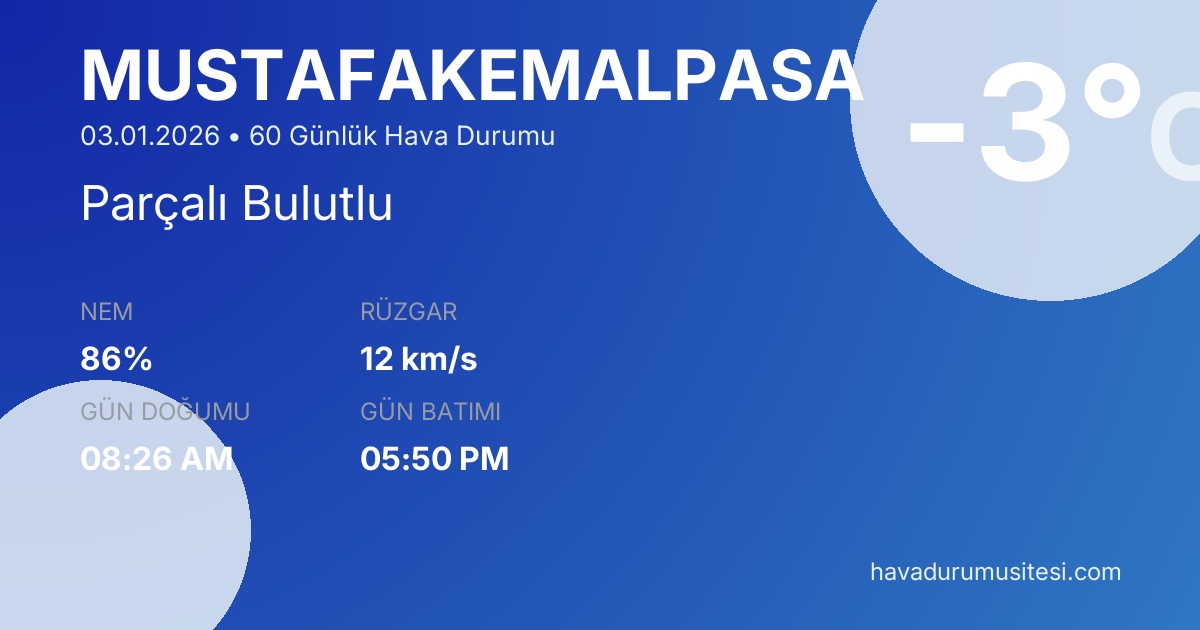 Mustafakemalpaşa 60 Günlük Hava Durumu