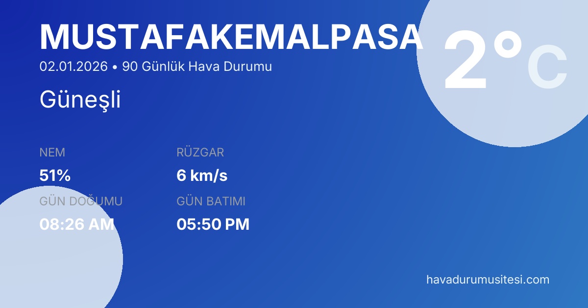 Mustafakemalpaşa 90 Günlük Hava Durumu