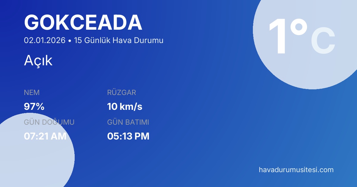 Şu anda Gökçeada'da sıcaklık 1°C, hava durumu Açık ve