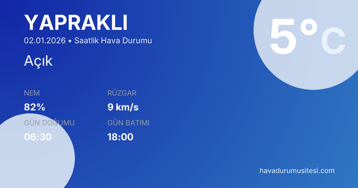 Yaprakli saatlik hava durumu ile hiçbir detayı kaçırmayın.