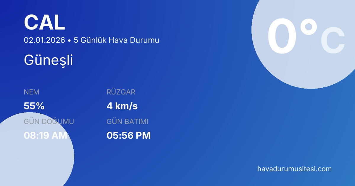 Çal için 5 günlük detaylı hava durumu tahmini. Son güncelleme: 02.01.2026 17:14 | Veriler uluslararası meteoroloji standartlarına uygun olarak işlenmektedir.