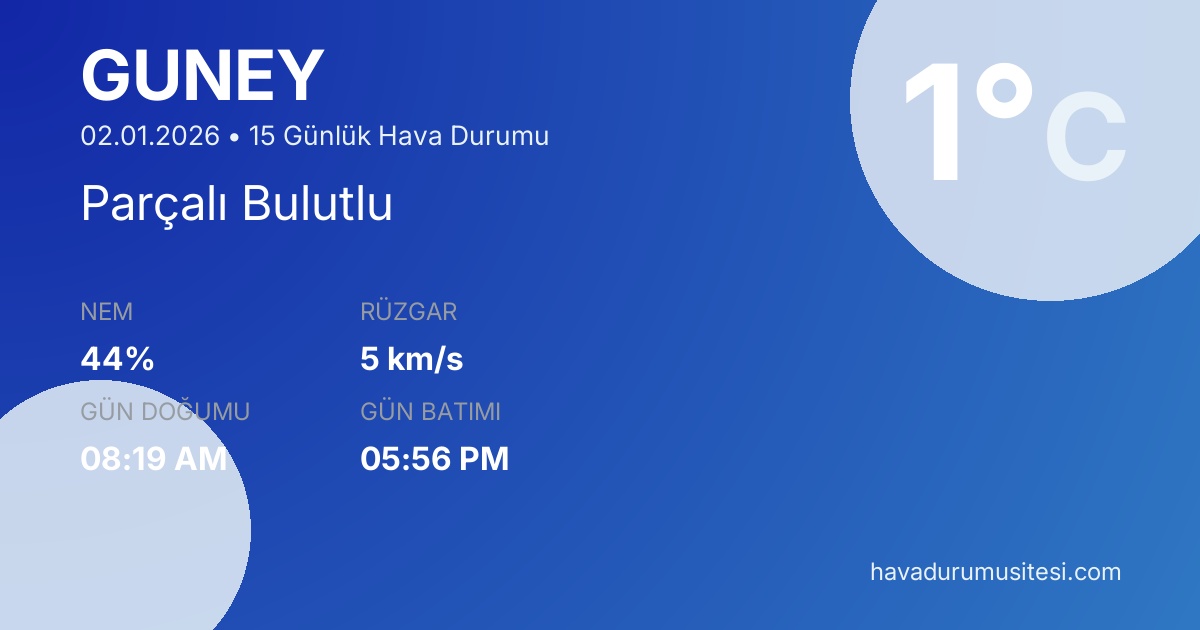 Güney 15 Günlük Hava Durumu - Detaylı Meteoroloji Tahminleri