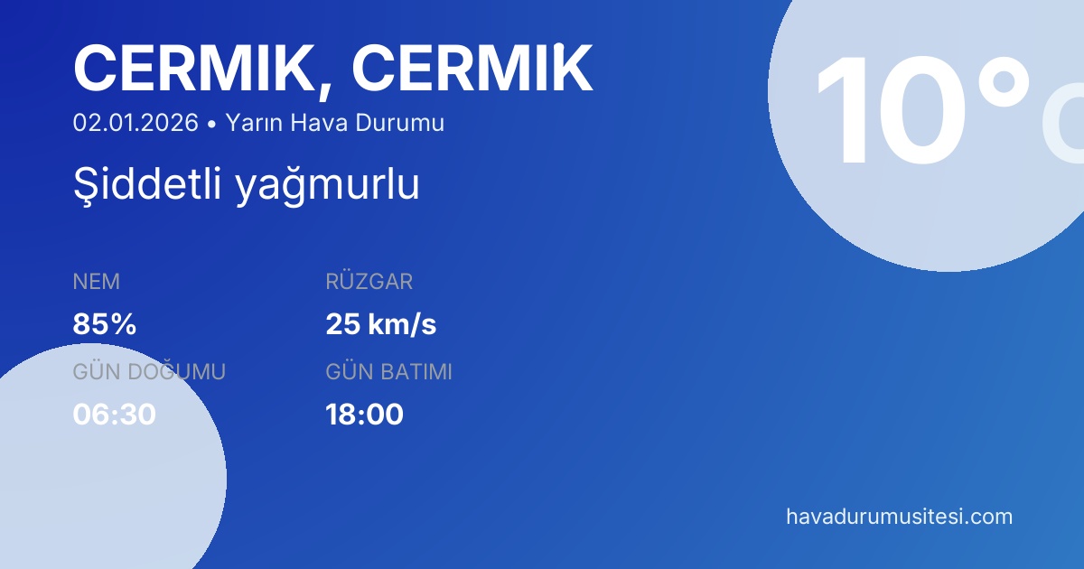 Çermi̇k için farklı zaman dilimlerinde hava durumu tahminleri sunuyoruz.