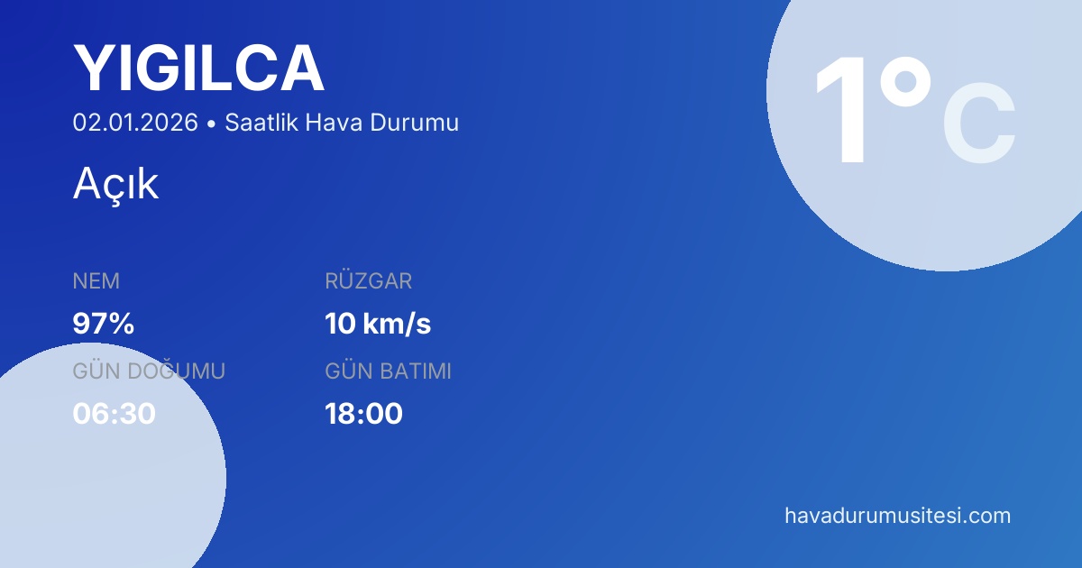 Şu anda Yiğilca'da sıcaklık 1°C, hava durumu Açık ve