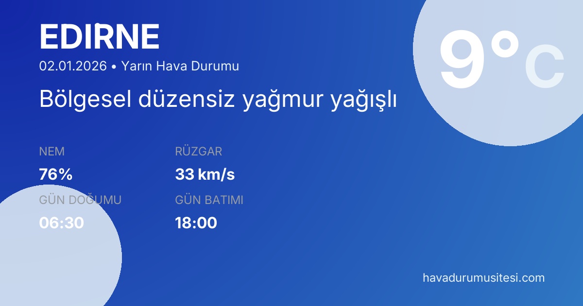 Edi̇rne yarın hava durumu tahminleri düzenli olarak güncellenmektedir.