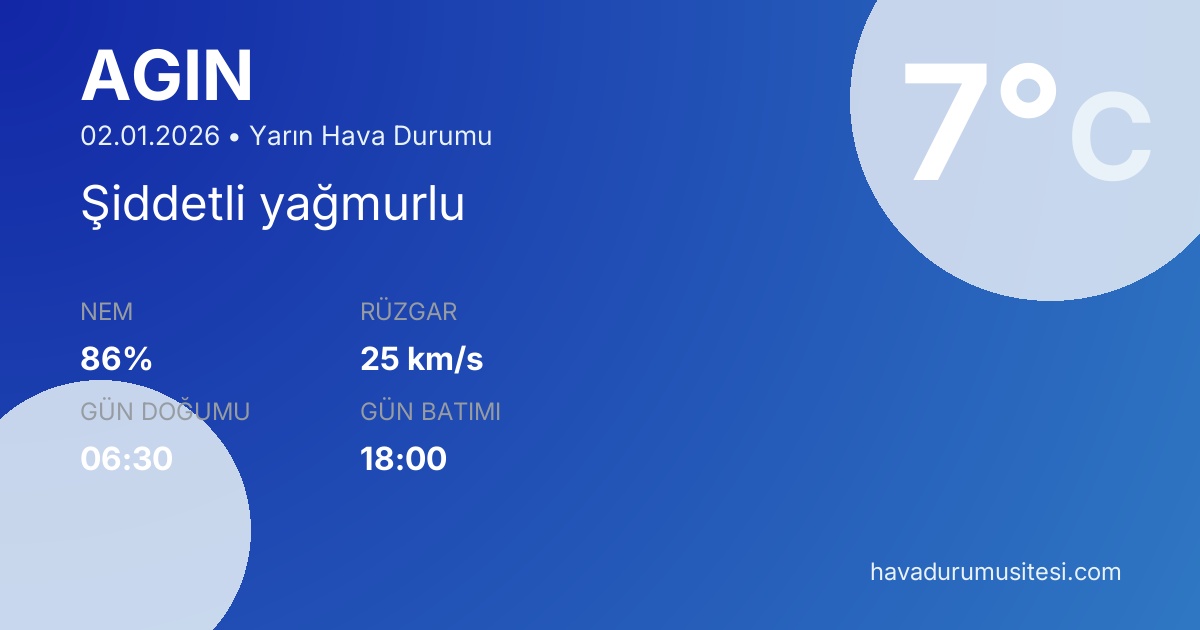 Güncel değerler için Ağin bugün hava durumu sayfamızdan kontrol edebilirsiniz.