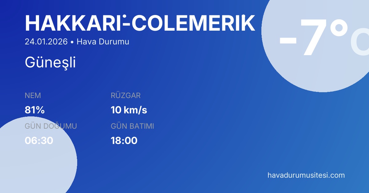 Hakkari̇ için farklı zaman dilimlerinde hava durumu tahminleri sunuyoruz.