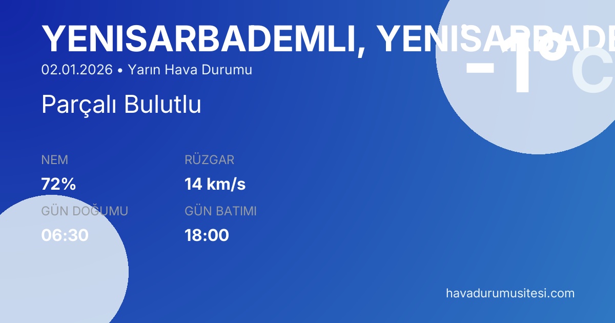Güncel değerler için Yeni̇şarbademli̇ bugün hava durumu sayfamızdan kontrol edebilirsiniz.