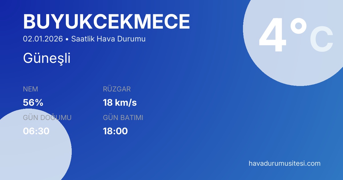 Büyükçekmece saatlik hava durumu ile hiçbir detayı kaçırmayın.