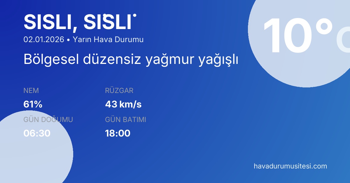Şi̇şli̇ yarın hava durumu tahminleri düzenli olarak güncellenmektedir. Meteoroloji verileri güvenilir kaynaklardan alınmakta ve sürekli güncellenmektedir. Son güncelleme: 02.01.2026 09:11