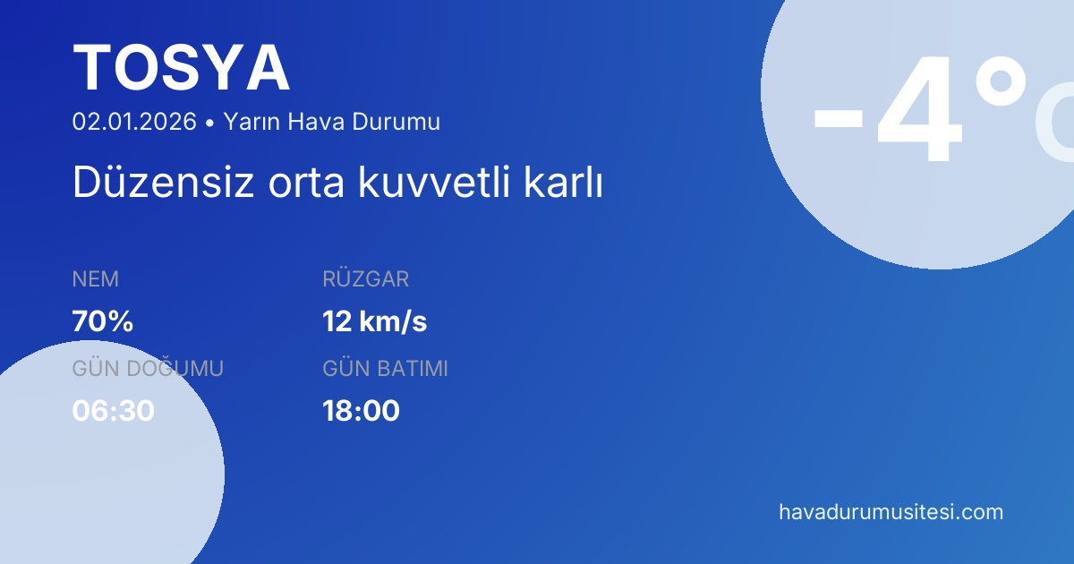 Tosya yarın hava durumu tahminleri düzenli olarak güncellenmektedir.