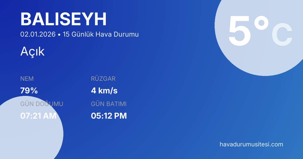Şu anda Balişeyh'da sıcaklık 5°C, hava durumu Açık ve