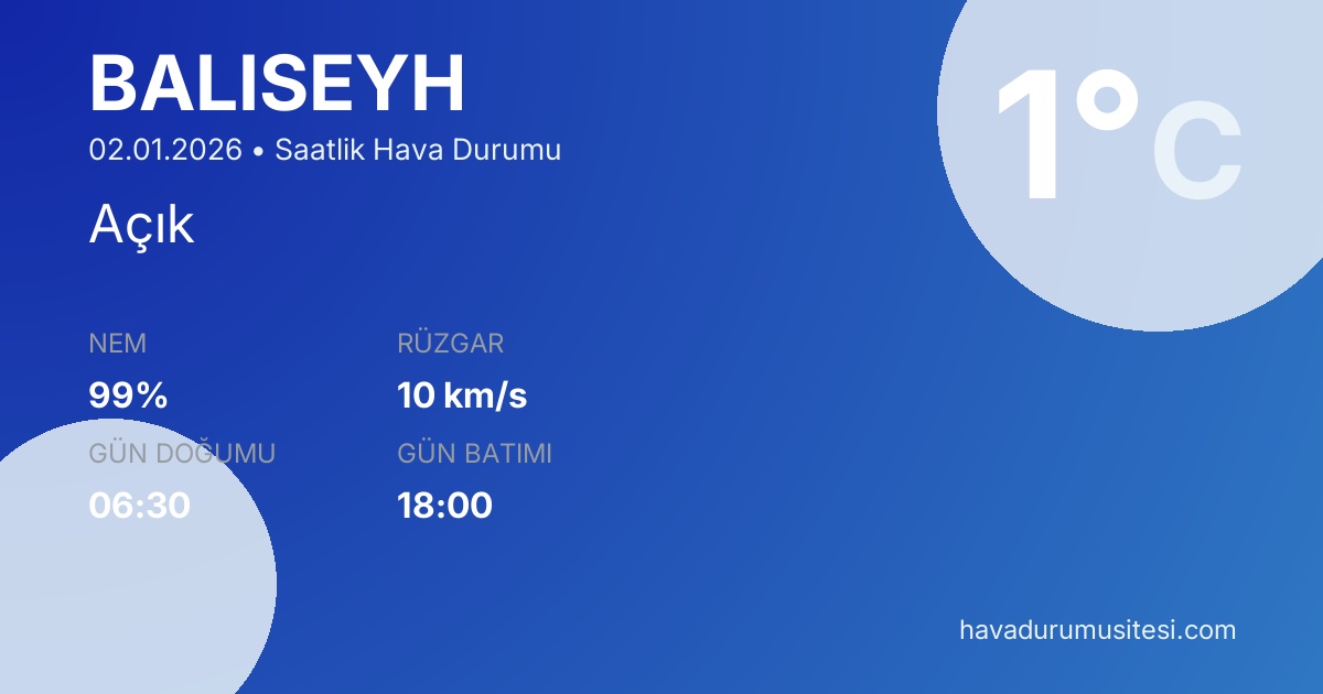 Balişeyh saatlik hava durumu ile hiçbir detayı kaçırmayın.