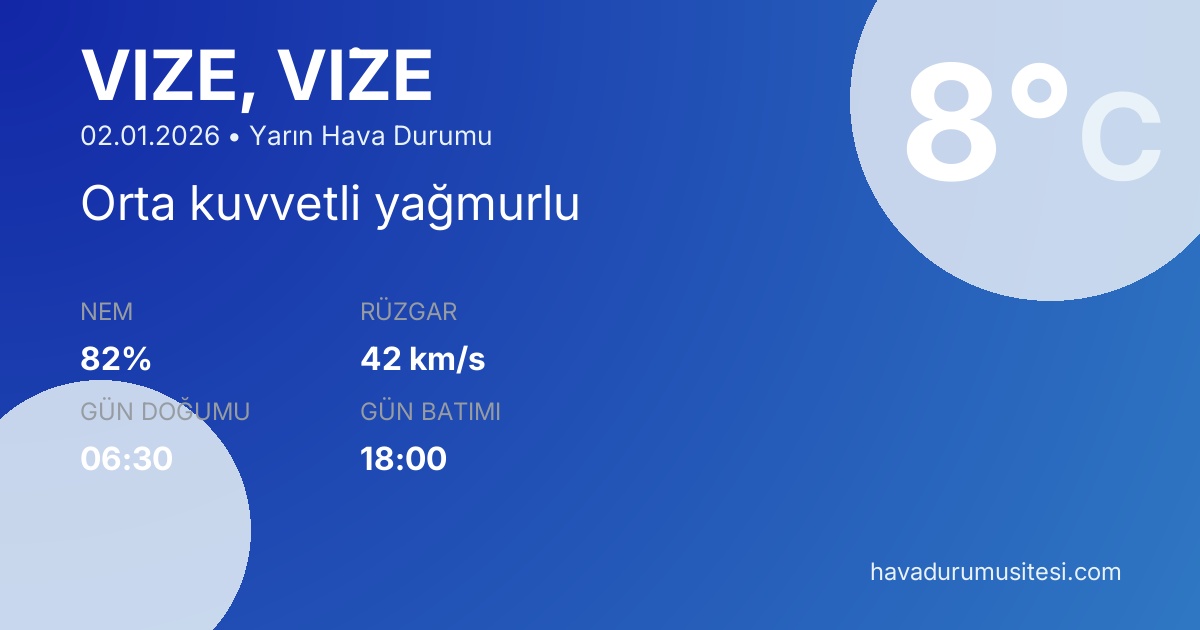 Güncel değerler için Vi̇ze bugün hava durumu sayfamızdan kontrol edebilirsiniz.