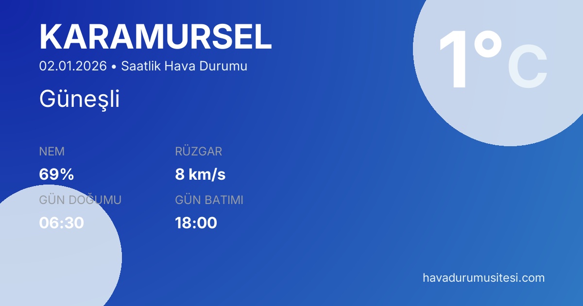 Karamürsel saatlik hava durumu ile hiçbir detayı kaçırmayın.