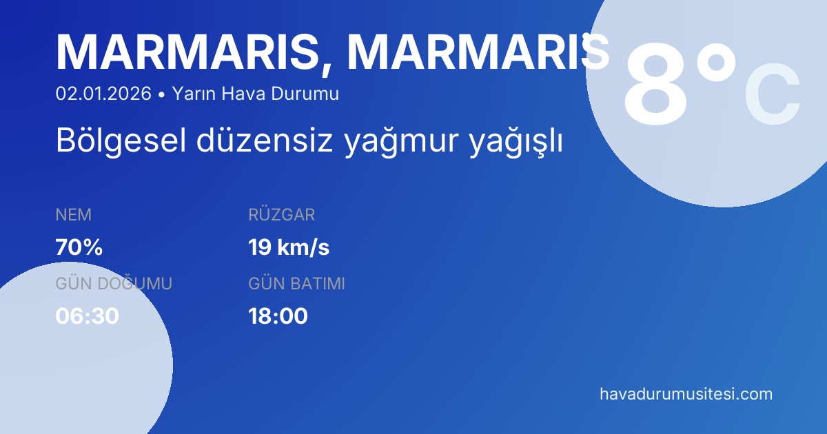 Marmari̇s yarın hava durumu tahminleri düzenli olarak güncellenmektedir.