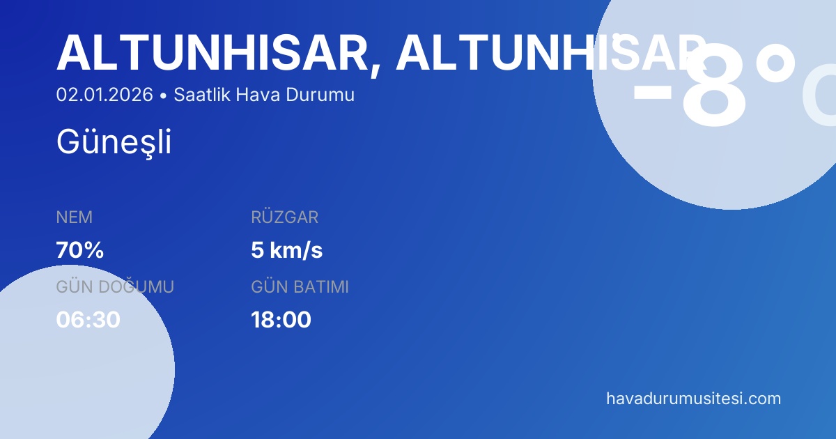 Şu anda Altunhi̇sar'da sıcaklık -8°C, hava durumu Güneşli ve
