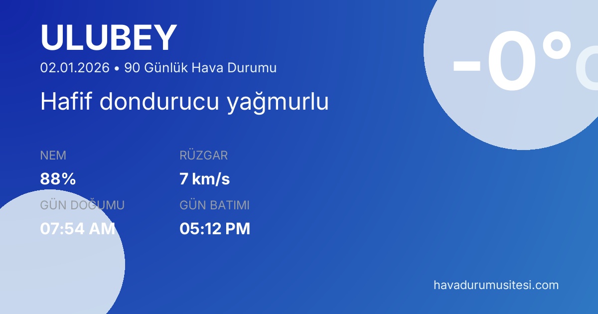 Ulubey için 90 günlük detaylı hava durumu tahmini. Son güncelleme: 02.01.2026 10:01 | Veriler uluslararası meteoroloji standartlarına uygun olarak işlenmektedir.