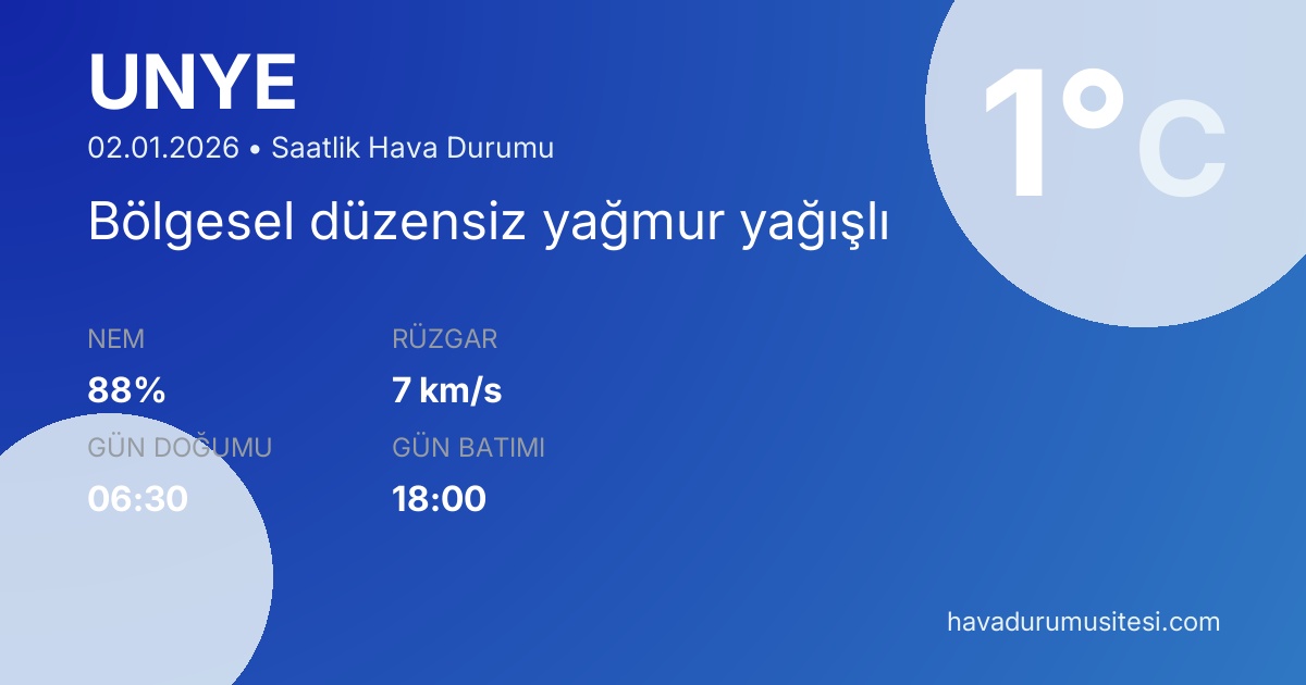 Ünye Saatlik Hava Durumu - 48 Saatlik Detaylı Tahminler