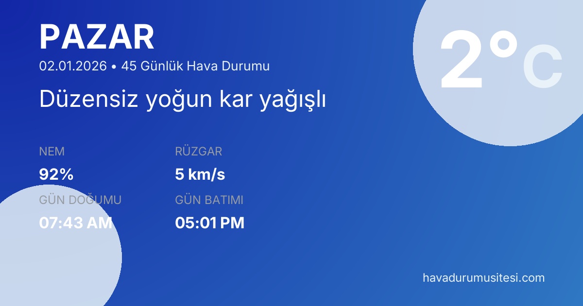 Pazar 45 Günlük Hava Durumu