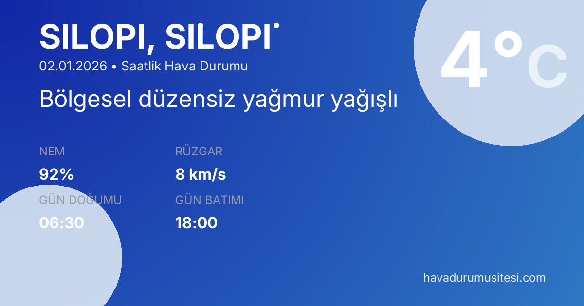 Şu anda Si̇lopi̇'da sıcaklık 4°C, hava durumu Bölgesel düzensiz yağmur yağışlı ve