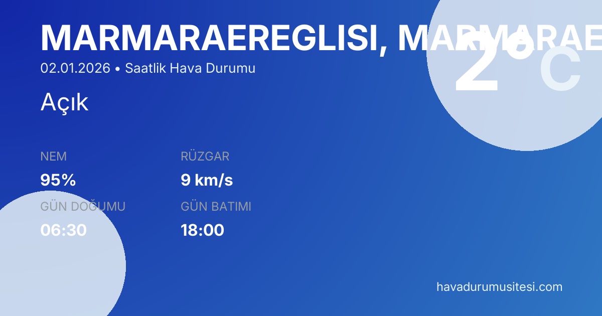 Marmaraereğli̇si̇ saatlik hava durumu ile hiçbir detayı kaçırmayın.