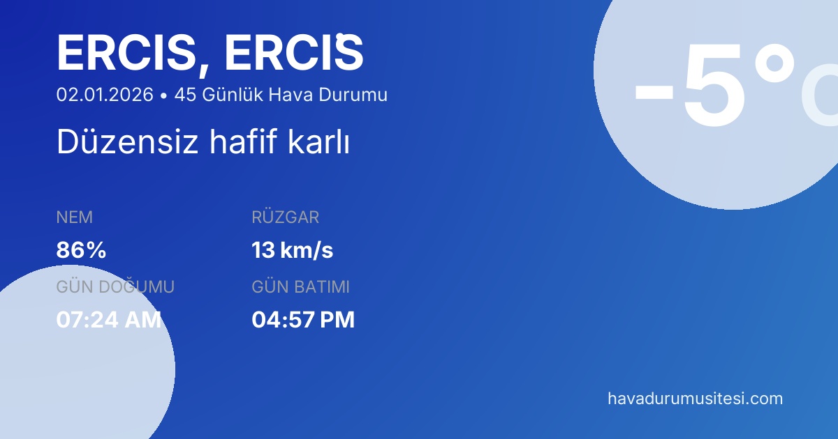 Erci̇ş 45 Günlük Hava Durumu