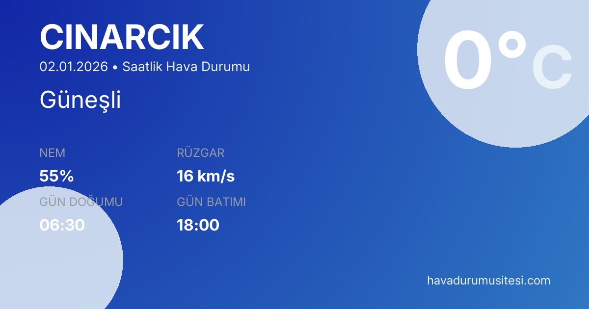 Çinarcik saatlik hava durumu ile hiçbir detayı kaçırmayın.