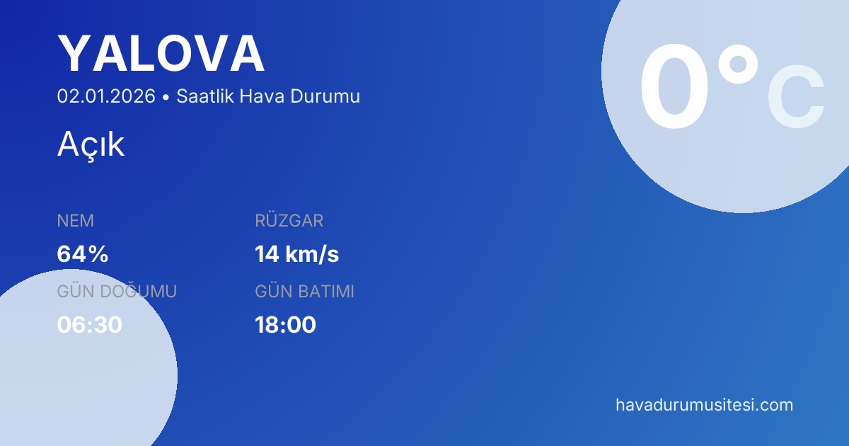 Yalova saatlik hava durumu ile hiçbir detayı kaçırmayın.